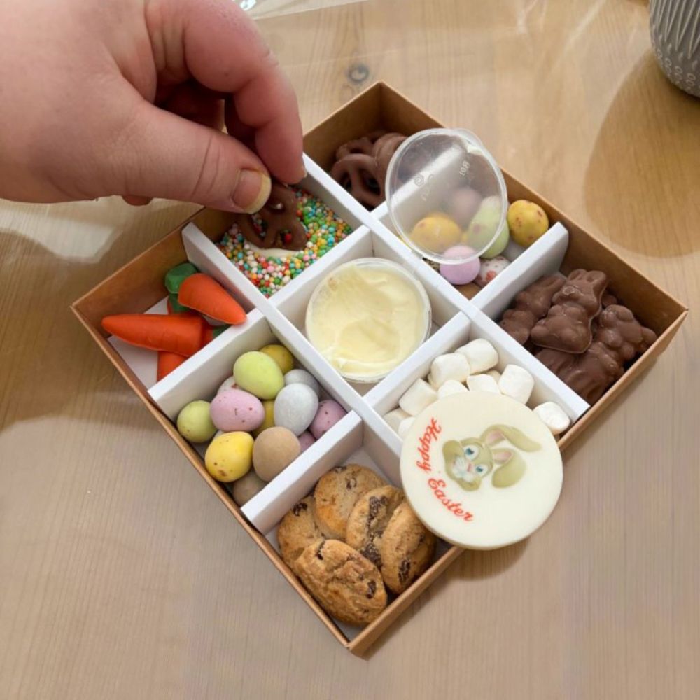 After its popularity last year, our Easter Grazing Box is back for 2026! Each grazing box contains chocolate-dipped pretzels, chocolate chip cookies, marshmallows, mini eggs, white chocolate carrots, milk chocolate bunnies, rainbow sprinkles, and a white chocolate dip in the centre. And, of course, our adorable white chocolate 'Happy Easter' plaque to finish! Whether its an alternative to an Easter egg, or a treat to share amongst family, this is the perfect seasonal treat if you want to offer customers something unique... and delicious!